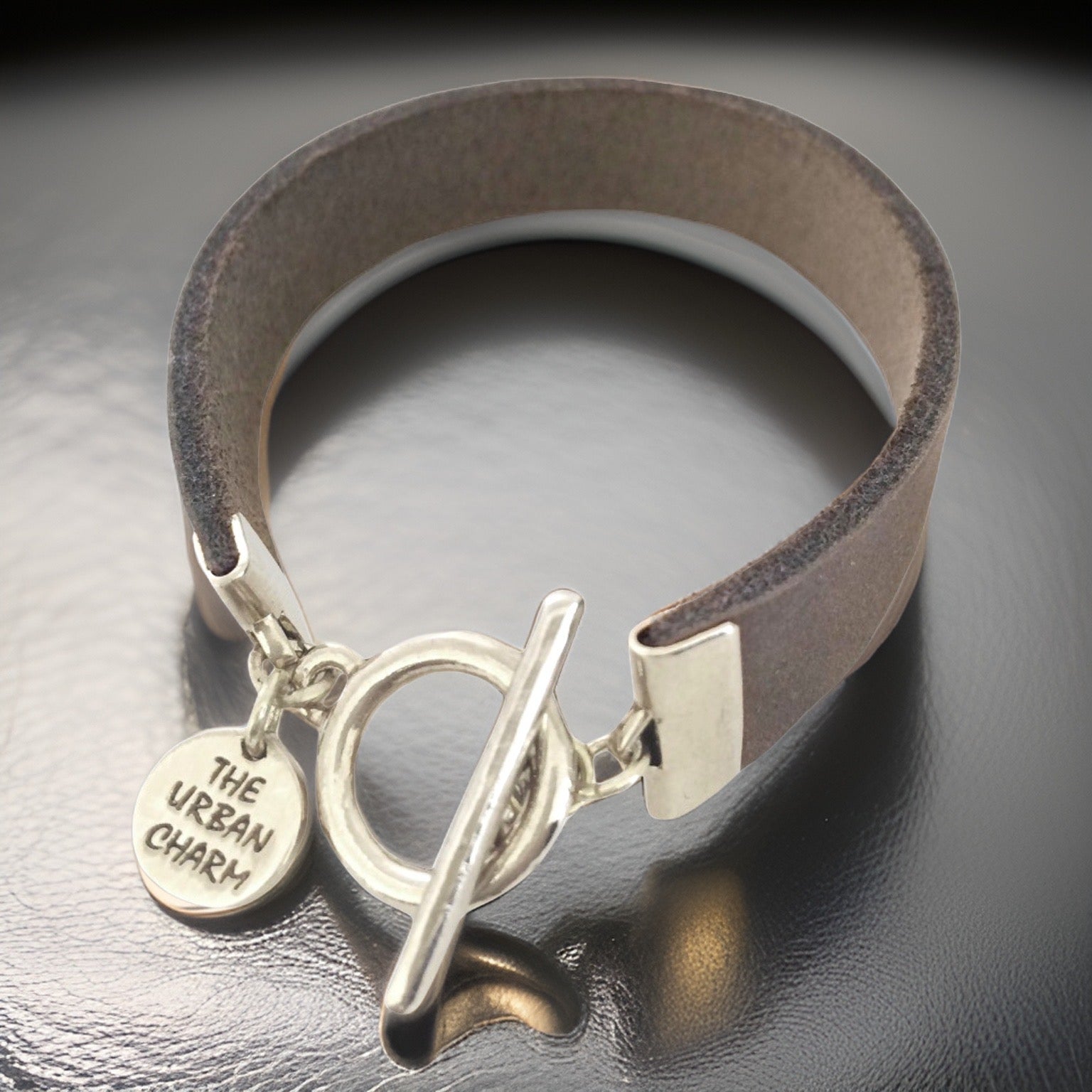 The Urban Charm distressed gray color band is made with genuine leather and features a branded hand casted logo and toggle closure. Pair it with any of the lures of love earrings or stack more up your arm for an arm party. You can add your favorite essential oil to the back of the leather to keep you feeling and smelling great all day.
