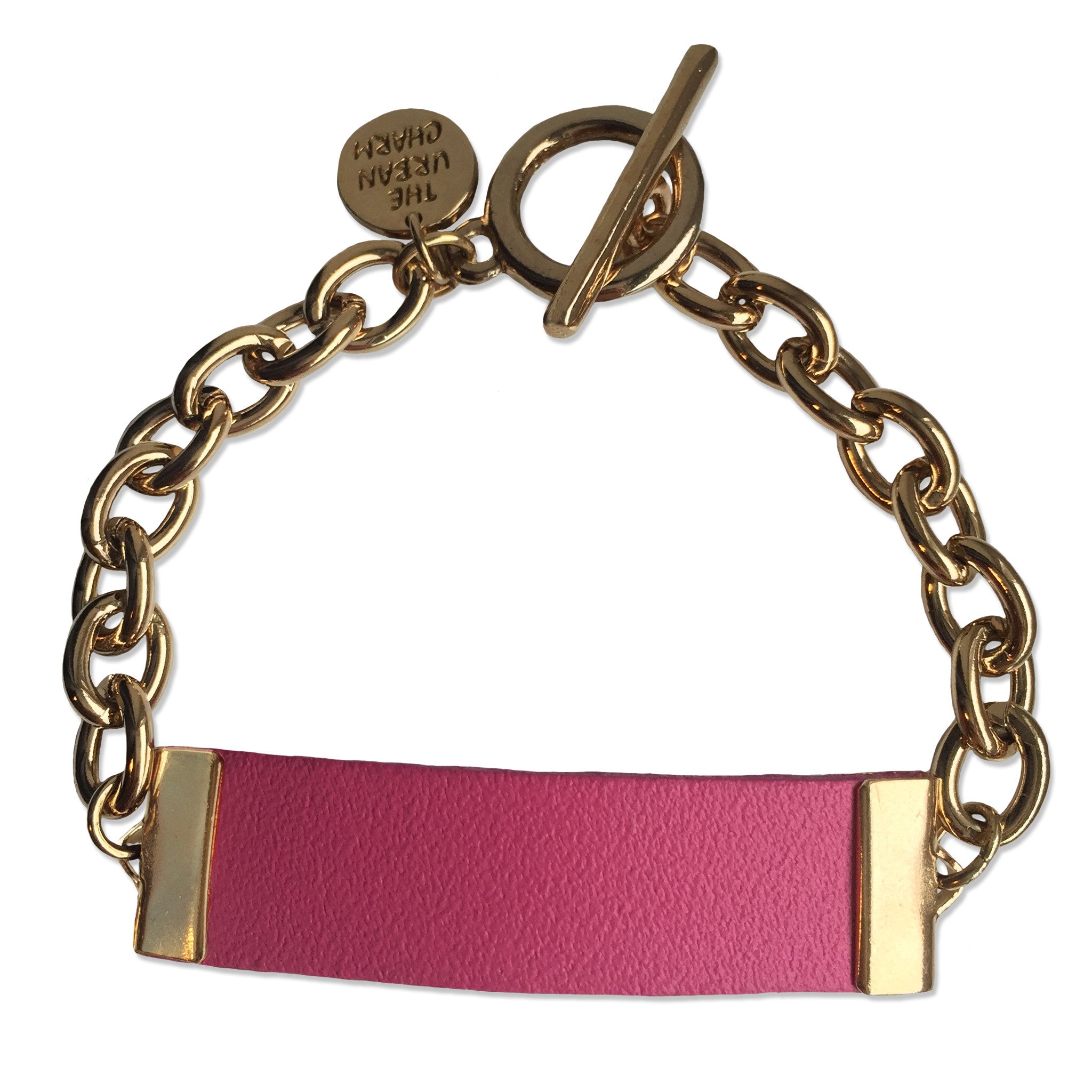 The pink leather ID bracelet is a fun new take on the traditional ID bracelets. The leather is soft and forms to your wrist after a couple times of wearing.