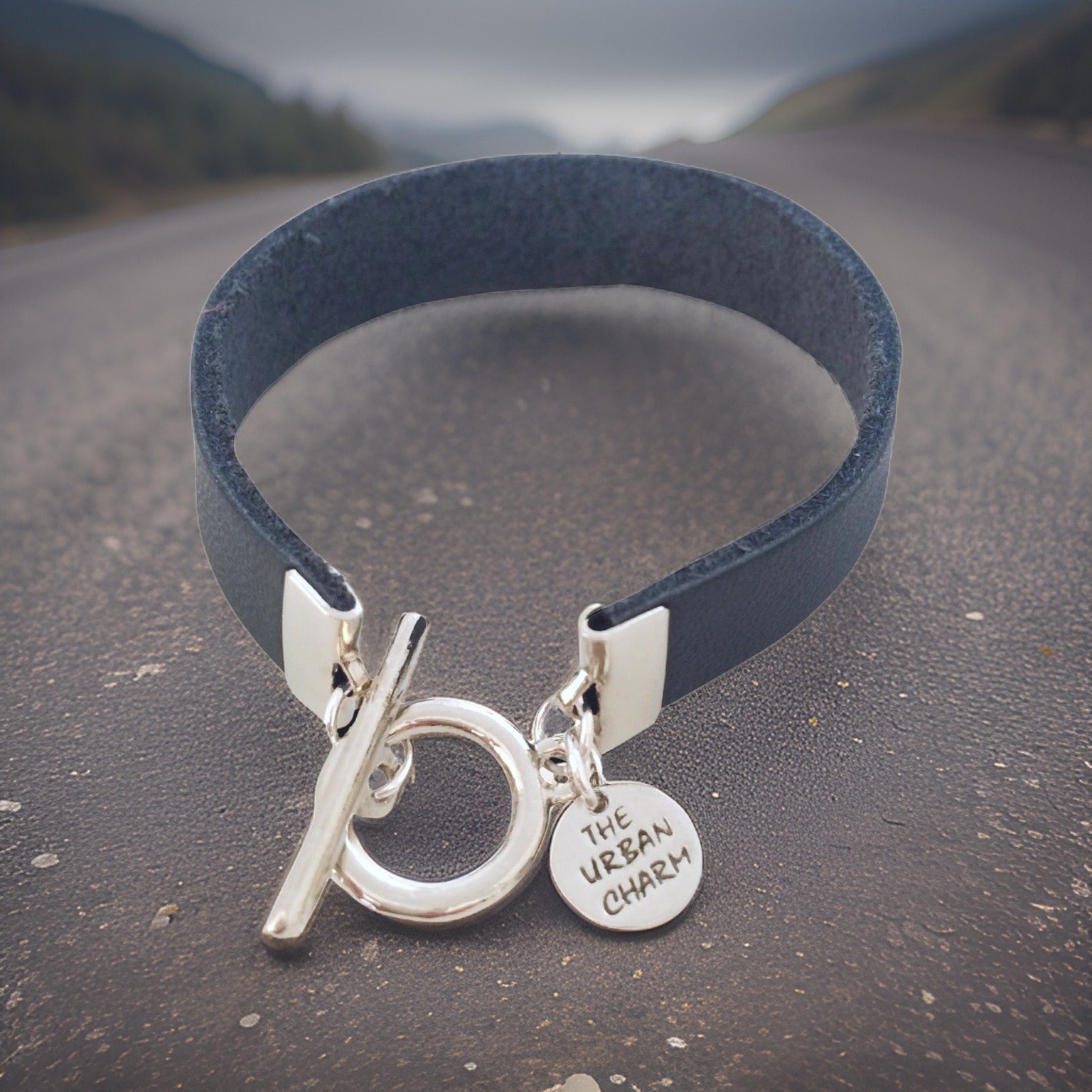 The Urban Charm navy color band is made with genuine leather and features a branded hand casted logo and toggle closure. Pair it with any of the lures of love earrings or stack more up your arm for an arm party. You can add your favorite essential oil to the back of the leather to keep you feeling and smelling great all day.