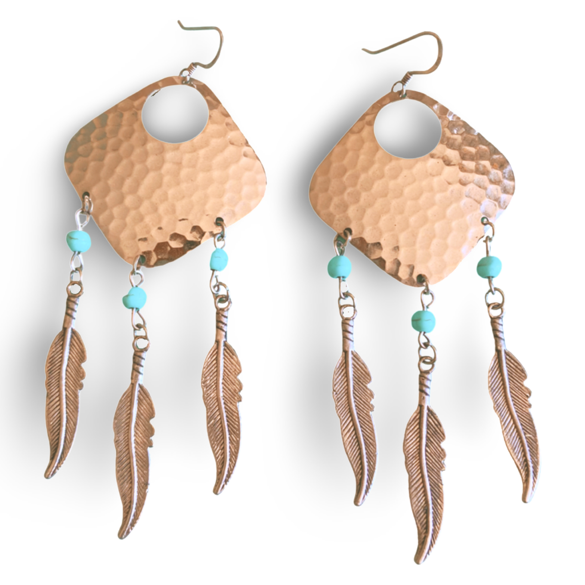 The Dream Catcher Earrings with Turquoise Accents and Feathers by The Urban Charm are meticulously handcrafted in the USA, combining symbolic design with refined craftsmanship. Made from a durable blend of brass and pewter, these earrings feature a distinctive hammered texture finished in your choice of radiant 18k gold or elegant silver plating at 2.5 microns thickness for lasting shine. Accented with vibrant turquoise beads and delicate feather charms, they carry a meaningful reminder that dreams can come true. Equipped with hypoallergenic surgical steel ear wires, these earrings offer both comfort and style, making them perfect for everyday wear or special moments.