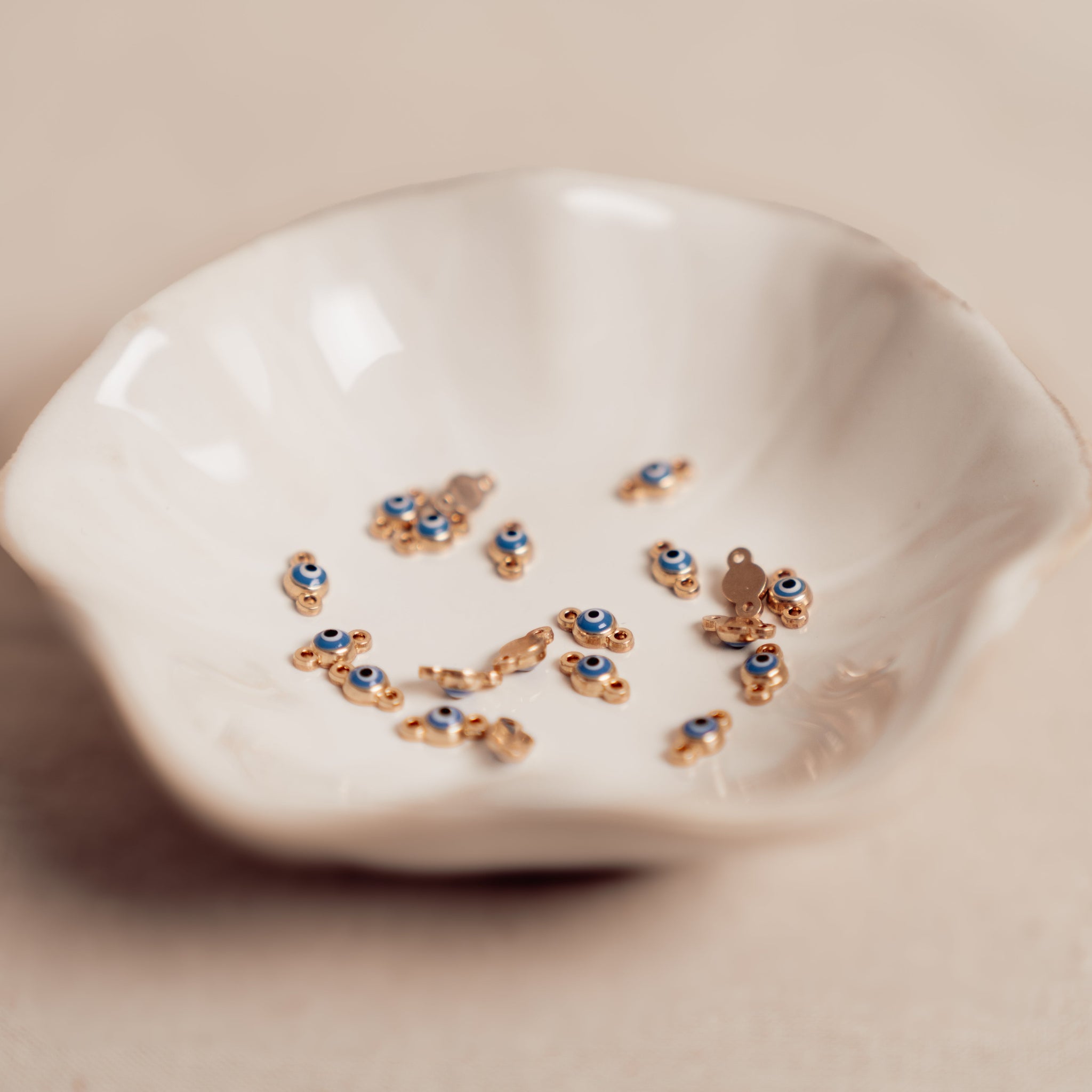 A classic symbol of protection, these vibrant gold filled and sterling silver Blue Evil Eye connectors are made with sturdy enamel to give your customers a sense of ease without compromising style.
