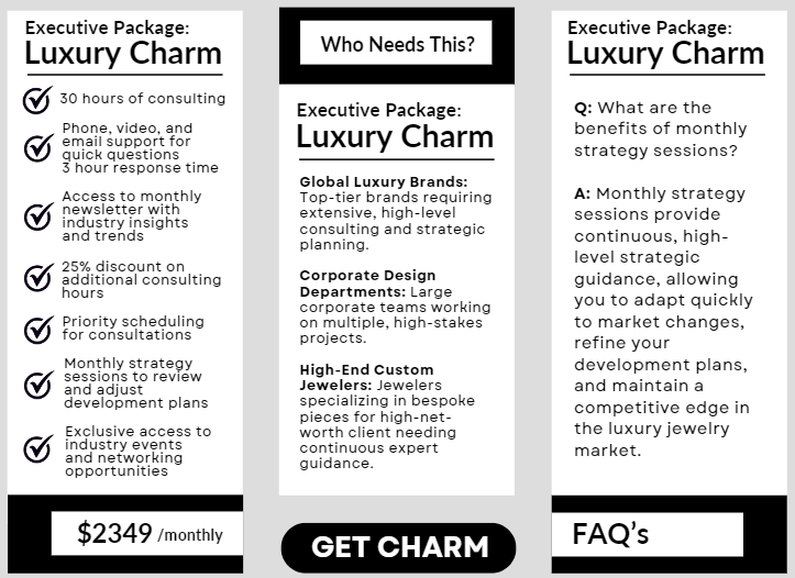 A: Monthly strategy sessions provide continuous, high-level strategic guidance, allowing you to adapt quickly to market changes, refine your development plans, and maintain a competitive edge in the luxury jewelry market.