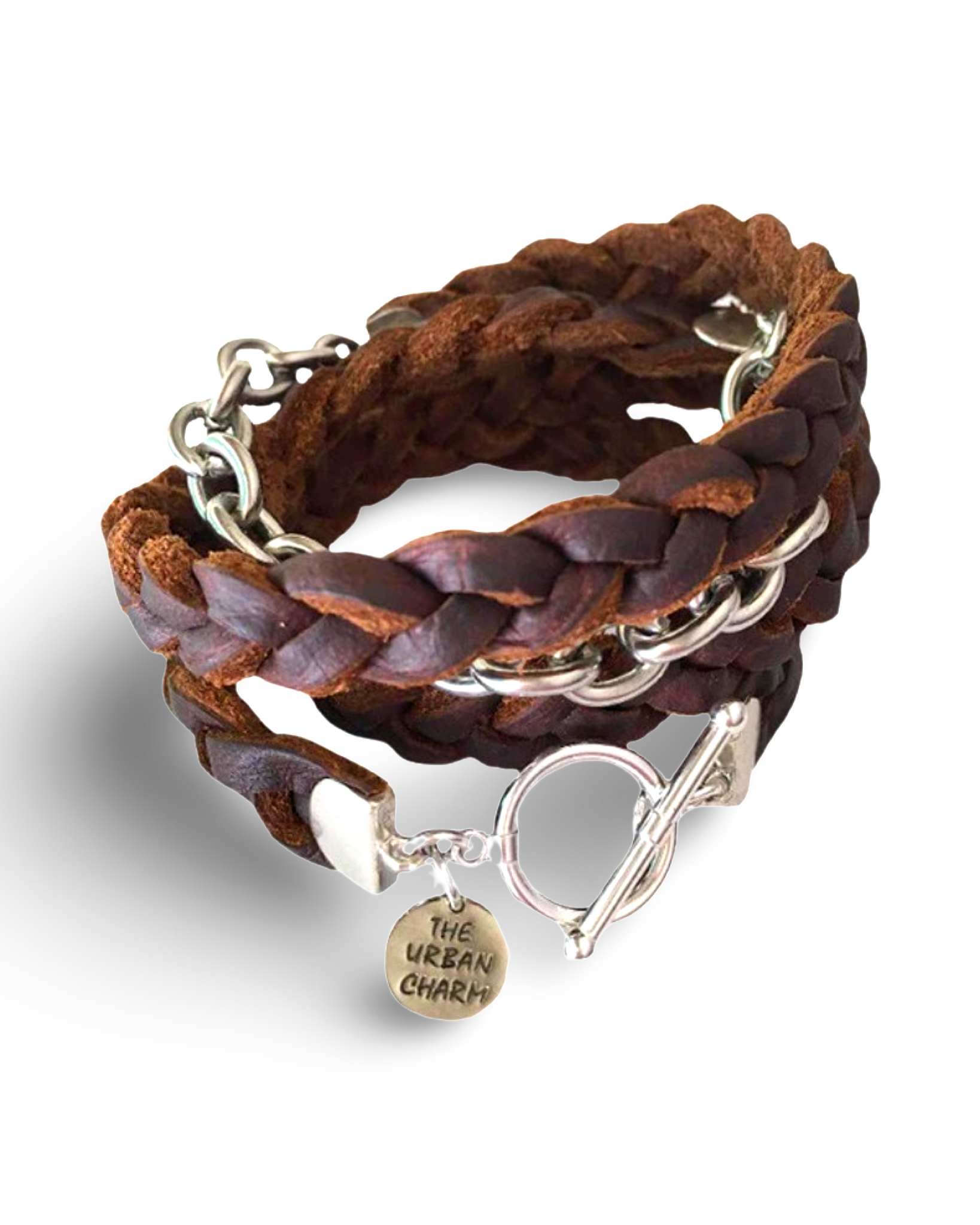 This brown braided four-wrap genuine leather bracelet is a versatile accessory designed for everyday wear. Its adaptable leather naturally molds to the shape of your wrist over time, ensuring a comfortable and personalized fit. Crafted from high-quality genuine leather, the bracelet features durable steel and pewter base metals finished in your choice of 24k gold or silver, allowing you to customize its look to suit your style. Securely fastened with a toggle closure, this piece combines both functionality and elegance, making it an essential addition to any accessory collection.