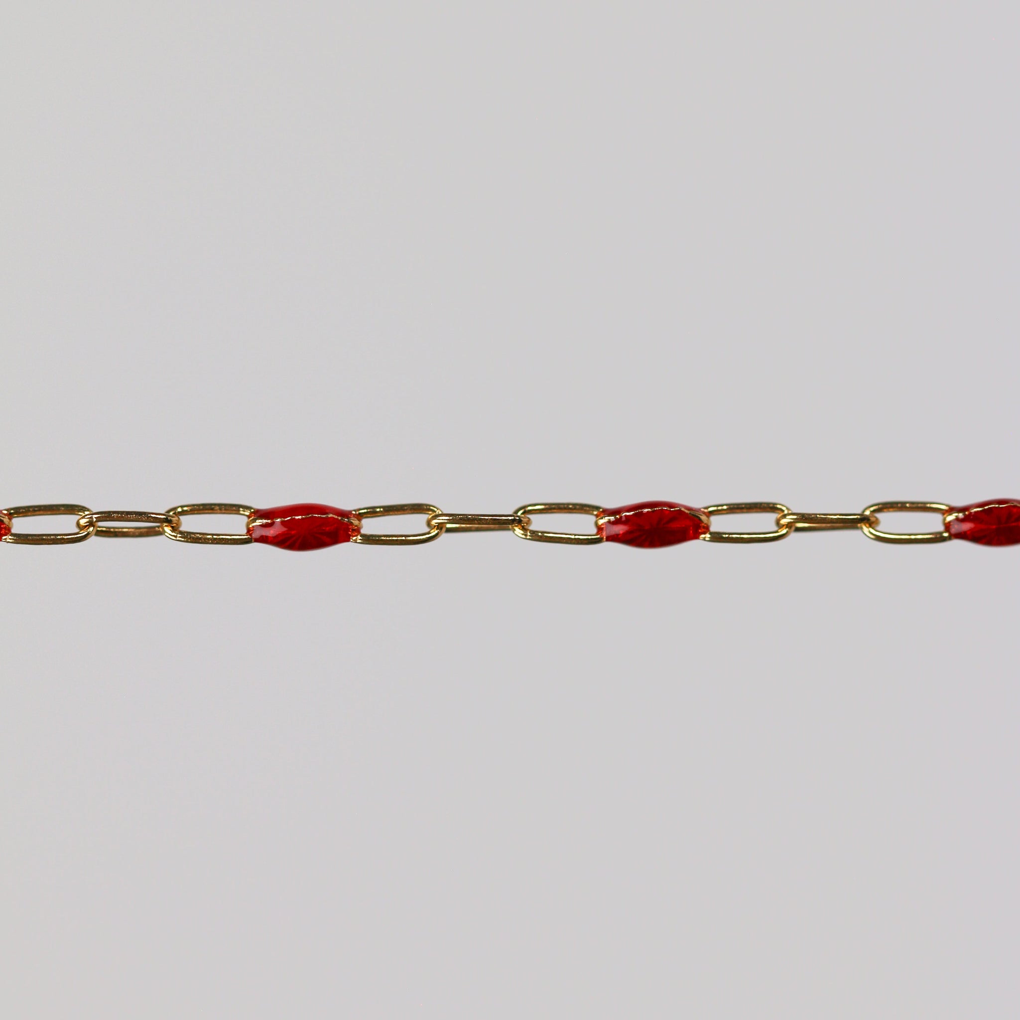 Irena Permanent Jewelry Chain, Red Enamel Design, Cable Links, Available in Gold Filled and Sterling Silver