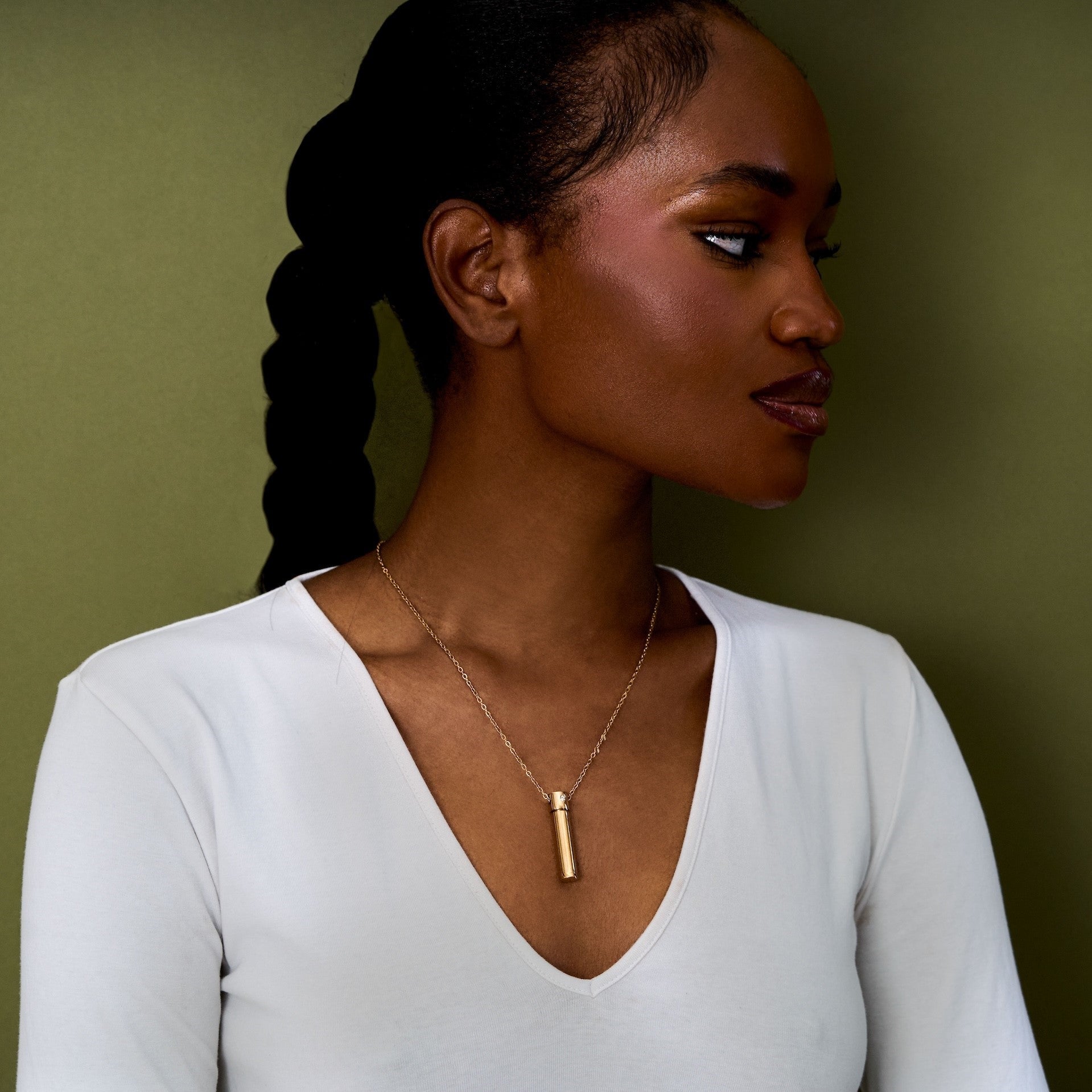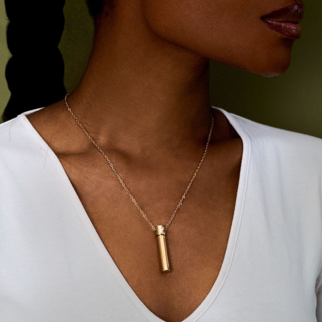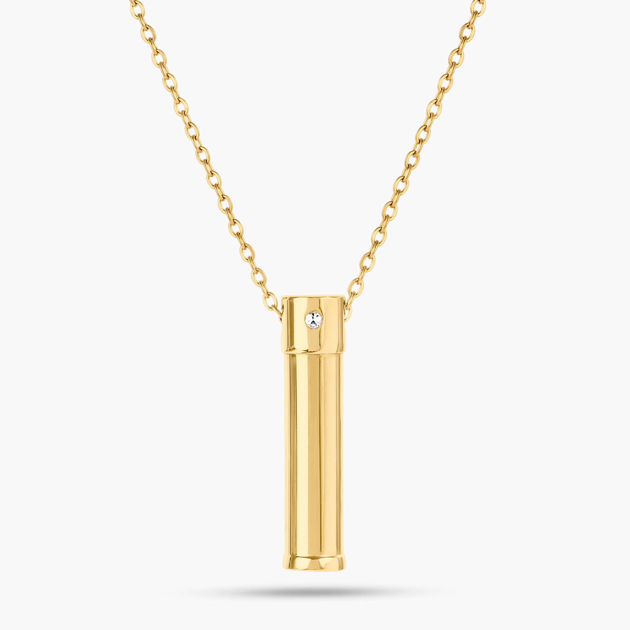 Keep loved ones close with the Memorial CZ Pillar. Crafted in gold-plated stainless steel, this elegant keepsake holds ashes securely. The sparkling CZ stone adds sophistication and honors cherished memories.