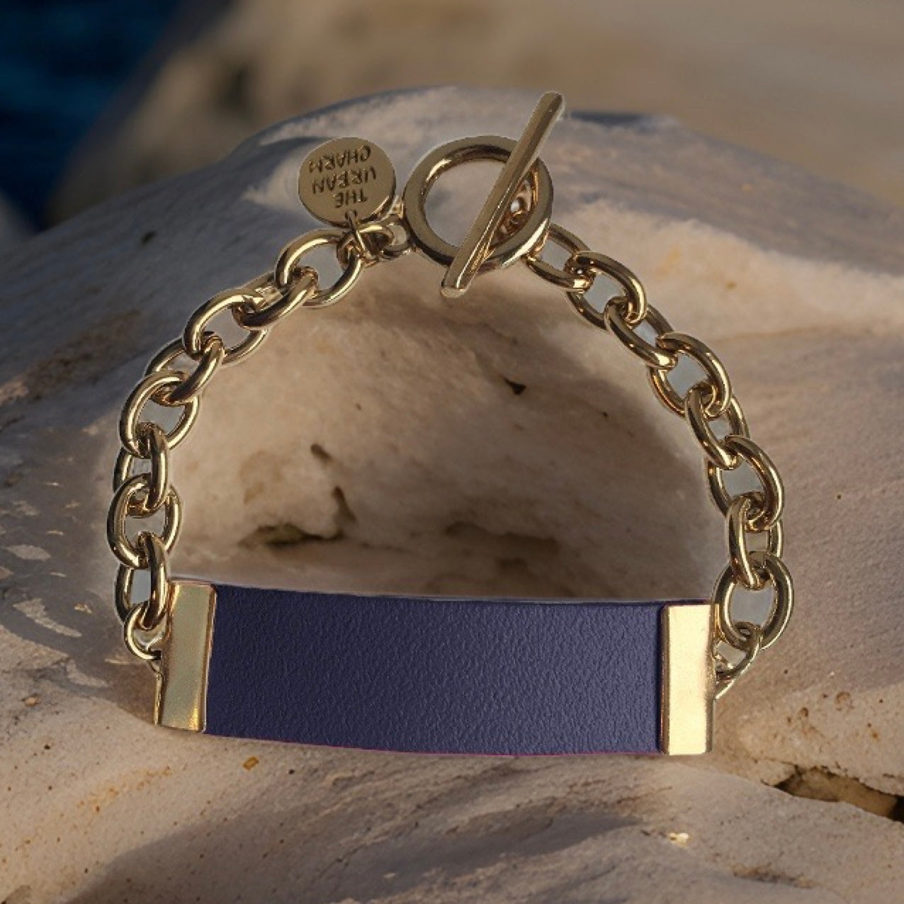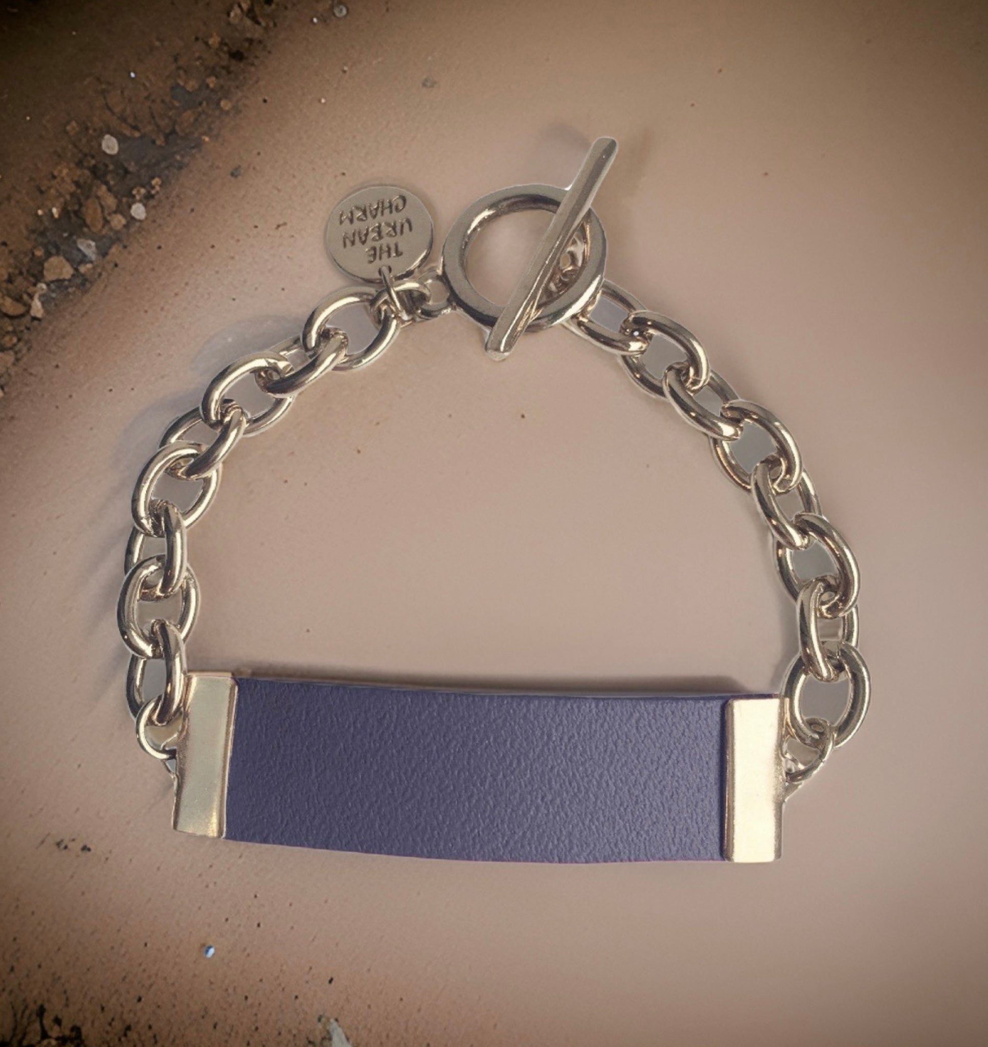 Leather Navy Leather ID bracelet is a fun new take on the traditional ID bracelets. The leather is soft and forms to your wrist after a couple times of wearing.